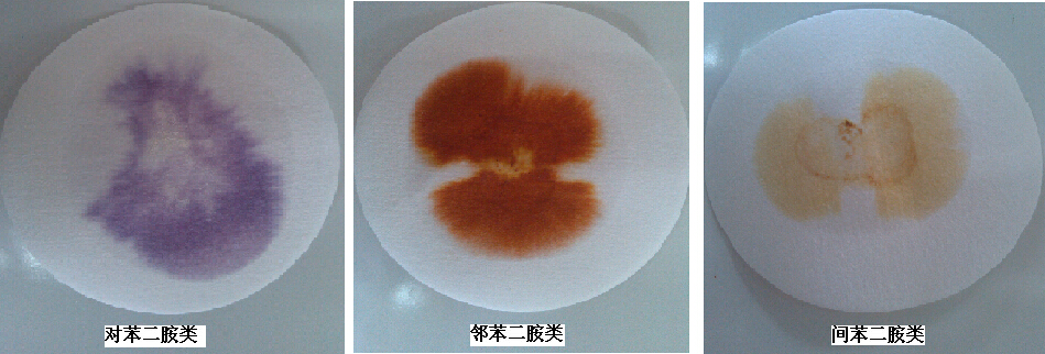 若3分鐘內濾紙顯紫色,則判定樣品中可能含有對苯二胺化學成分;若3分鐘內濾紙顯橙紅色或黃色系列顏色,則判定樣品中可能含有鄰苯二胺或間苯二胺化學成分。
